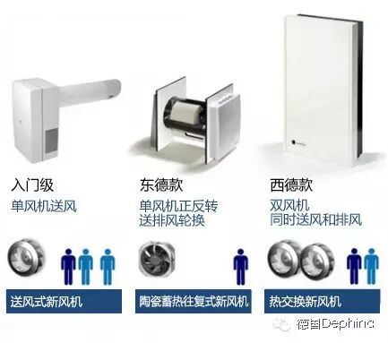 2,另外一种是西德款,两个风机同时送风和排风,双向循环。热交换效率更高些。东德地区的往复式的机器在德国南部地区不是很被看好,原因是看起来没有集中式或者全热交换的高级,价格上也相对西德款要便宜。